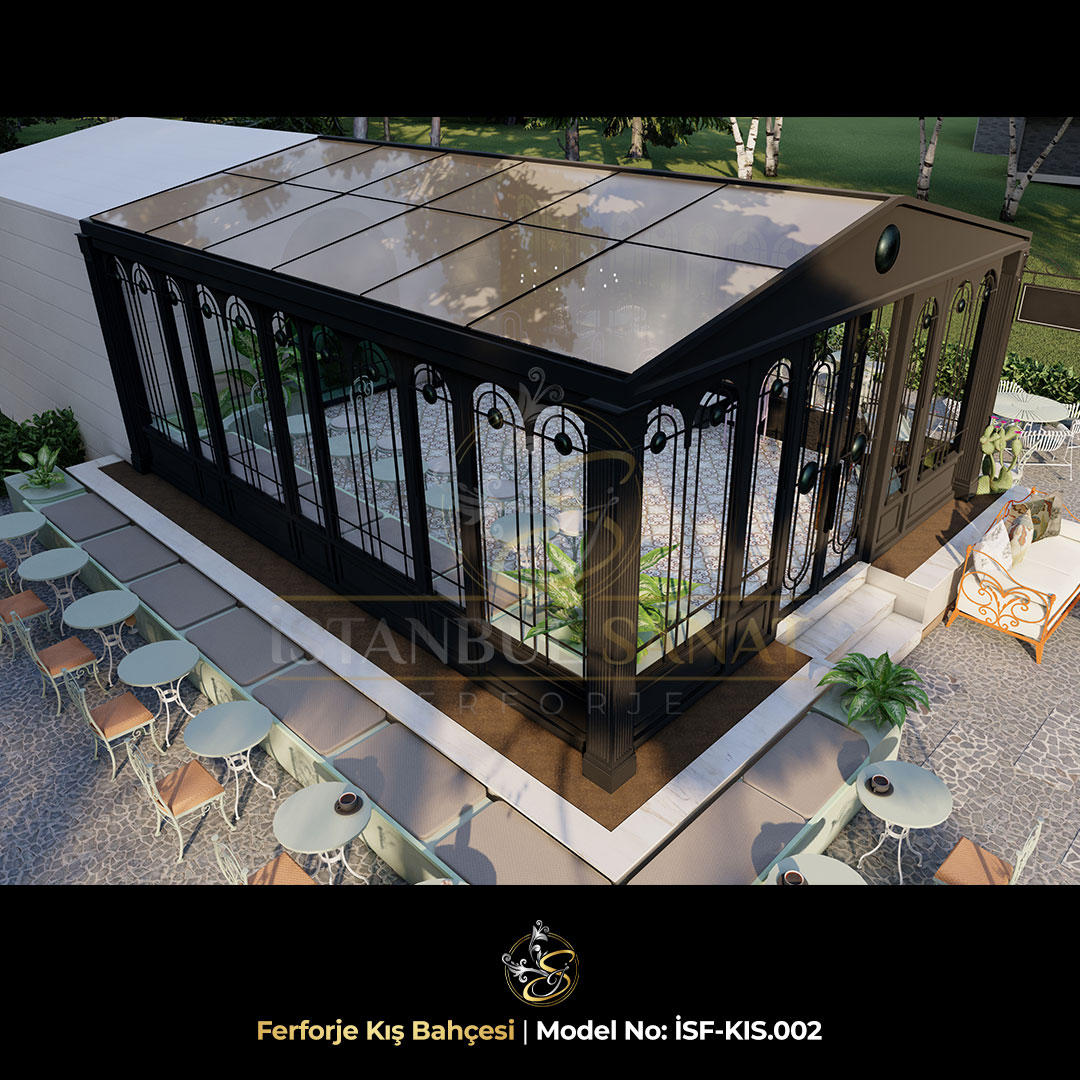 Wrought iron winter gardens are private living spaces, constructed entirely from iron and glass, usable throughout all four seasons and integrated with both interior and exterior spaces. Its difference from traditional greenhouses is that, combined with the architectural aesthetics of a wrought iron frame, it offers a long-lasting, safe, and decorative structure.