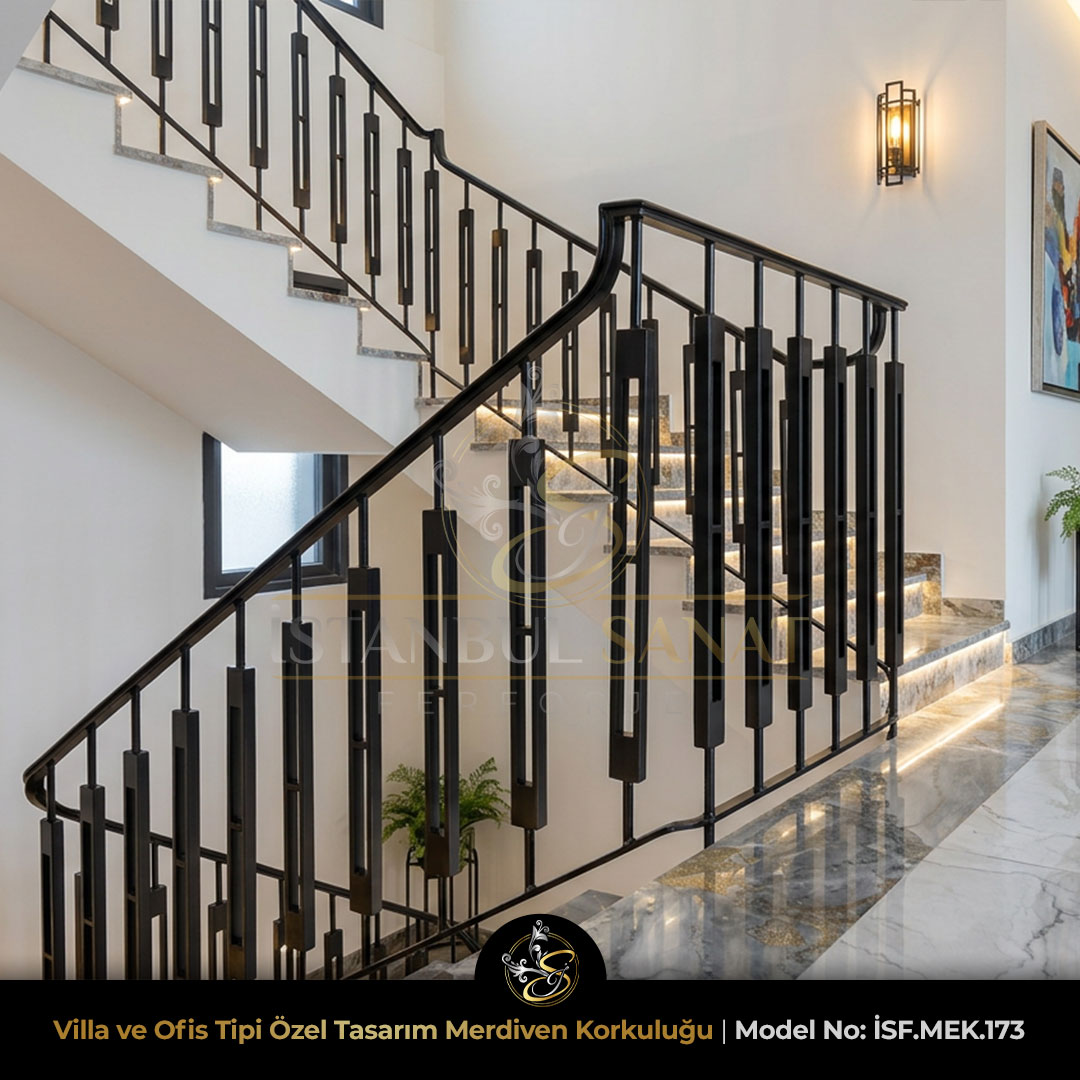Ferforje merdiven korkulukları, villa merdivenlerinden dubleks dairelere, otel lobilerinden kamu binalarına kadar her yapıda zarafetin simgesi haline gelmiştir Biz, İstanbul Sanat Ferforje olarak, her projede kullanıcının tarzına, mekânın mimarisine ve güvenlik gereksinimlerine göre özel üretim gerçekleştiriyoruz.